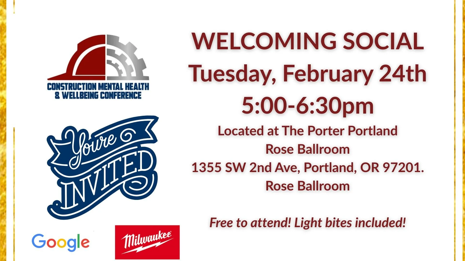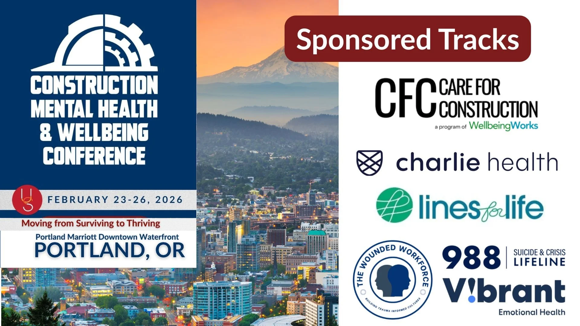 This year’s Construction Mental Health & Wellbeing Conference will be held at the Portland Marriott Downtown Waterfront Hotel located at 1401 SW Naito Parkway, Portland, OR 97201.